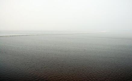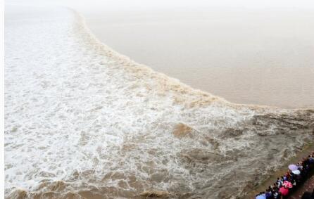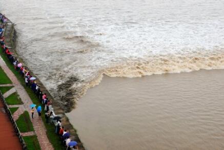天际边的那条线,就是著名的一线潮,正滚滚而来。